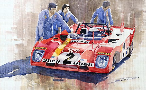 Ferrari 312 PB 1972 Daytona 6-hour winningWatercolour on paper