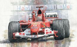 2004 Germany GP Ferrari F2004 Schumacher winnerWatercolour on paper, 45 x 70 cm |