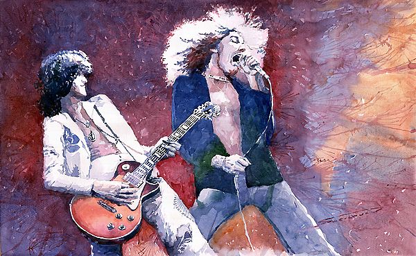 Led Zeppelin Jimmi Page and Robert PlantWatercolour on paper